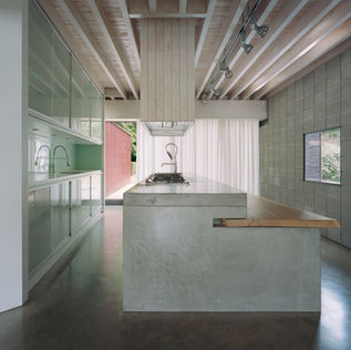 The bohemian type stands out in unrevealing the covering up of supposed more important life matters. This bohemian thinks, lives and dresses differently. In many eras the ‘poor look’ is his dress code, obviously also for practical reasons. The architect / bohemian handles straightforward materials and shows his production techniques, since the bohemian likes the naked and the bold. Due to our positioning and layout of its surrounding garden, this house appears to be part of an adjacent, grand forest. The simple cubic language of the architecture seeks a contrast with the formal richness that this surrounding nature shows us benevolently. Sleeping rooms are positioned half underground, which automatically evokes a natural feeling of shelter. The intermediate floor of the living quarters follows the course of the original terrain slope. Slightly elevated, in relation to the surrounding landscape, the adjacent high, large living quarters, offers a view of the beautiful nature around. The large windows resemble paintings, with an ever-changing, seasonal and impressive scenery. The building materials used, show natural-looking colours and seem to refer to the raw material from which they are made. I hope that the building will age beautifully and it therefore will feel grounded. Most of the building materials used are relatively cheap to purchase. However, they are ennobled by the appearance that their exact application evokes. By doing so, it feels so natural, even honest and actual ‘poverty’ is experienced as a bohemian ‘wealth’.
